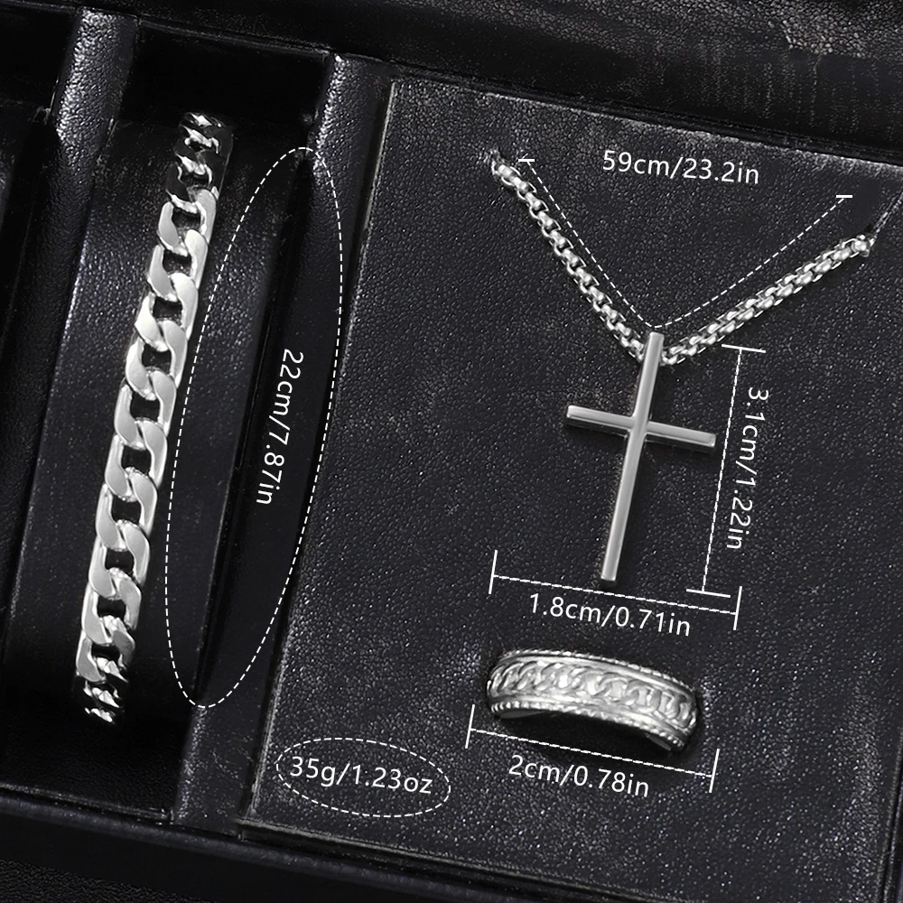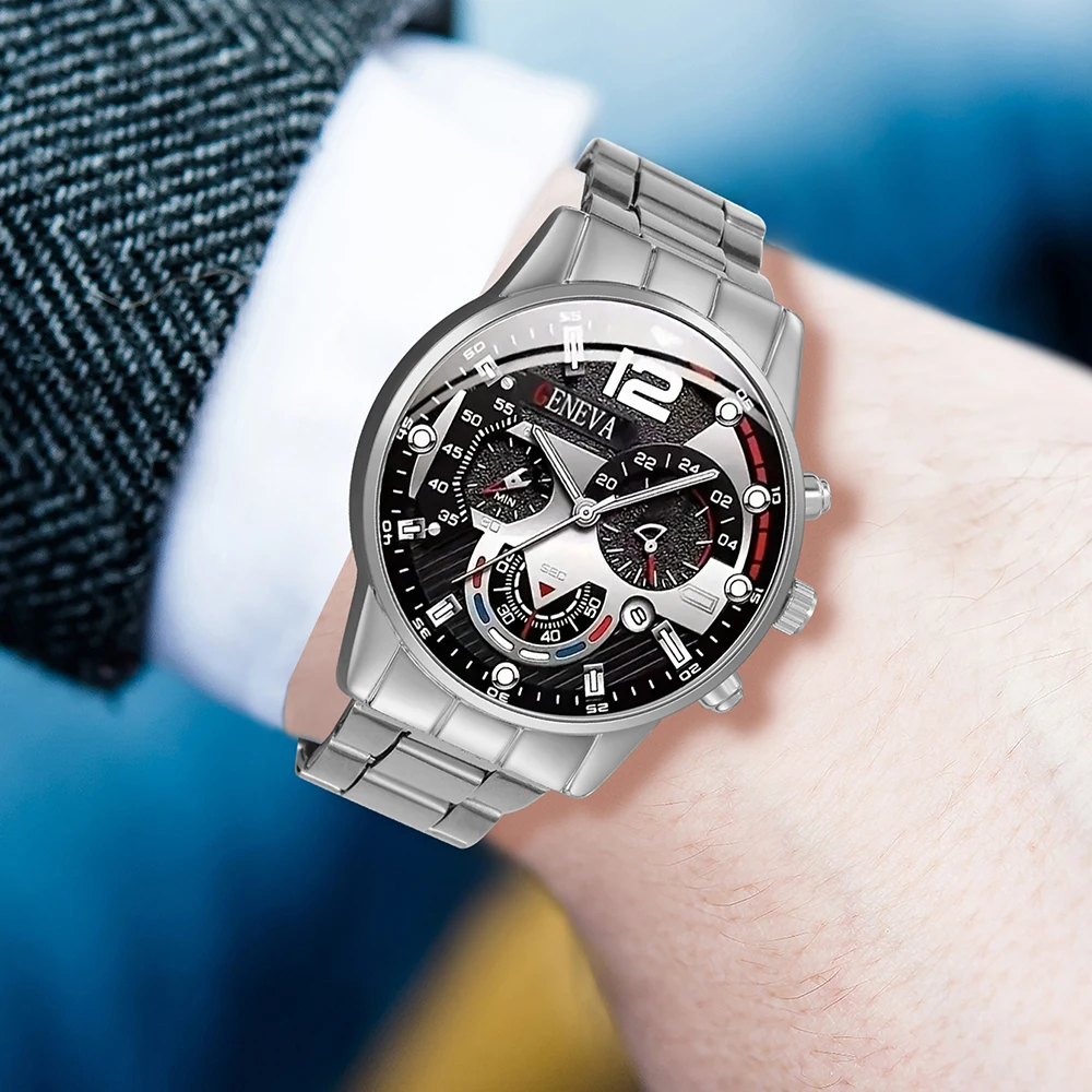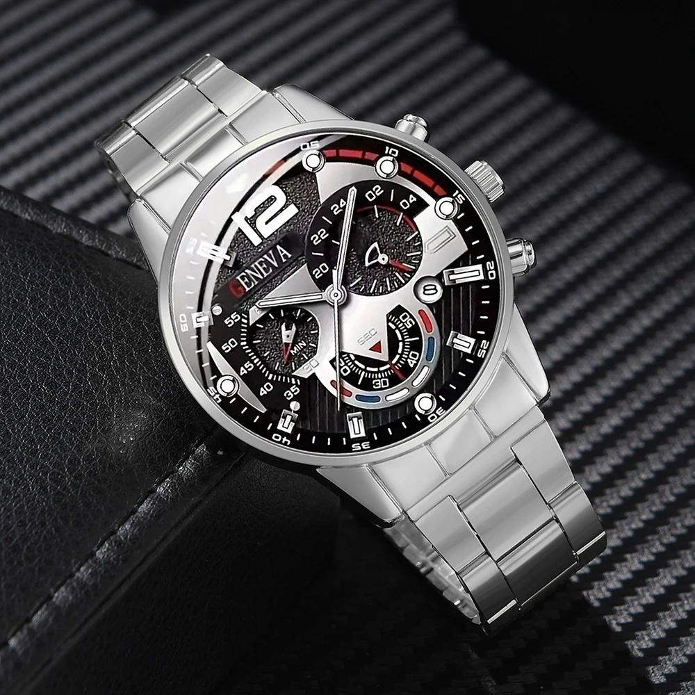 4PCS/Set Fashion Men’s Stainless Steel Band Watch Casual Calendar Quartz Watch Jewelry Set