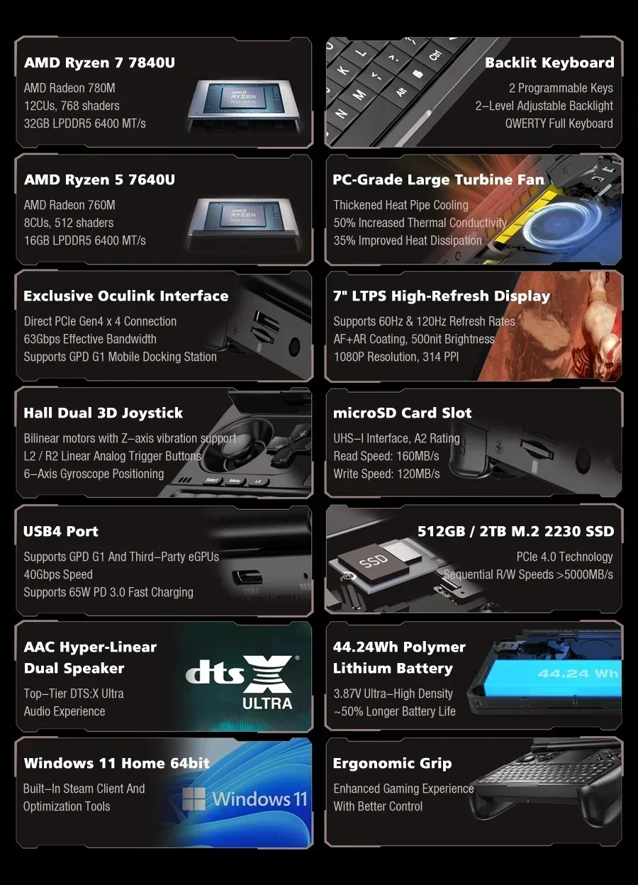 GPD WIN Mini 32GB Memory 512GB 2TB SSD Hard Disk CPU AMD Ryzen Processor Handheld Gaming Laptop Mini PC Notebook