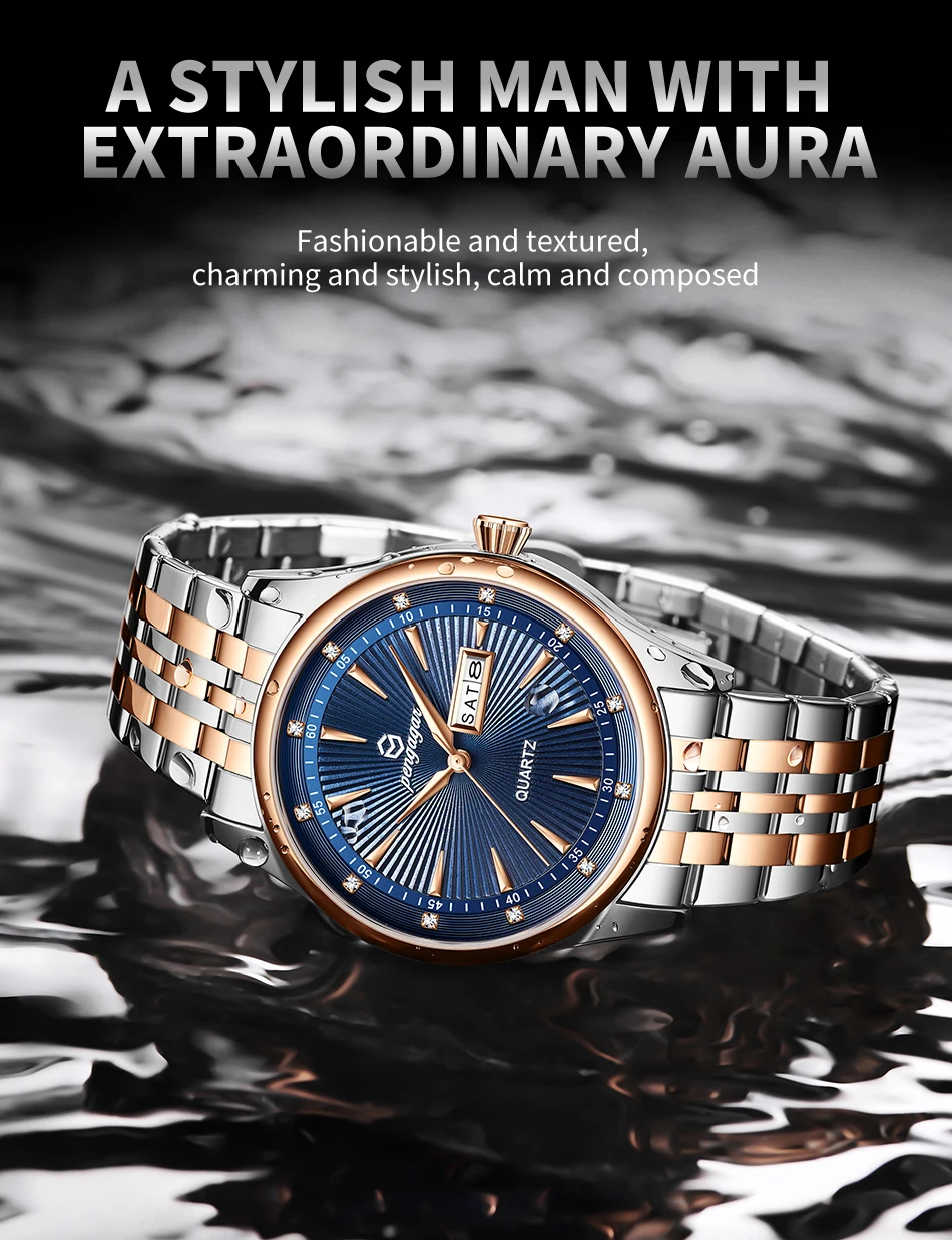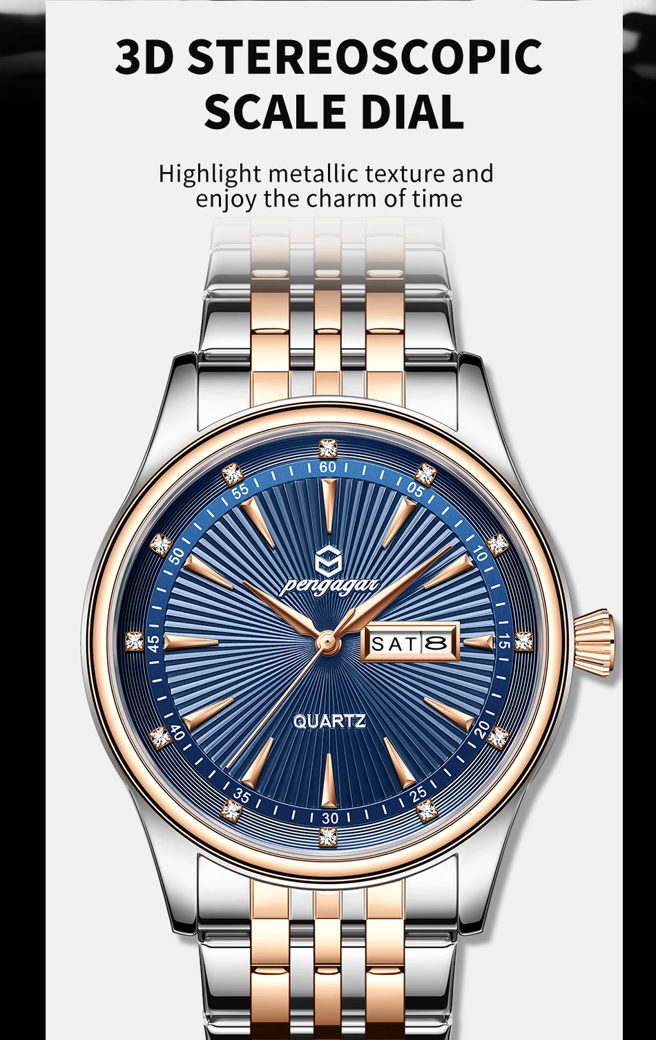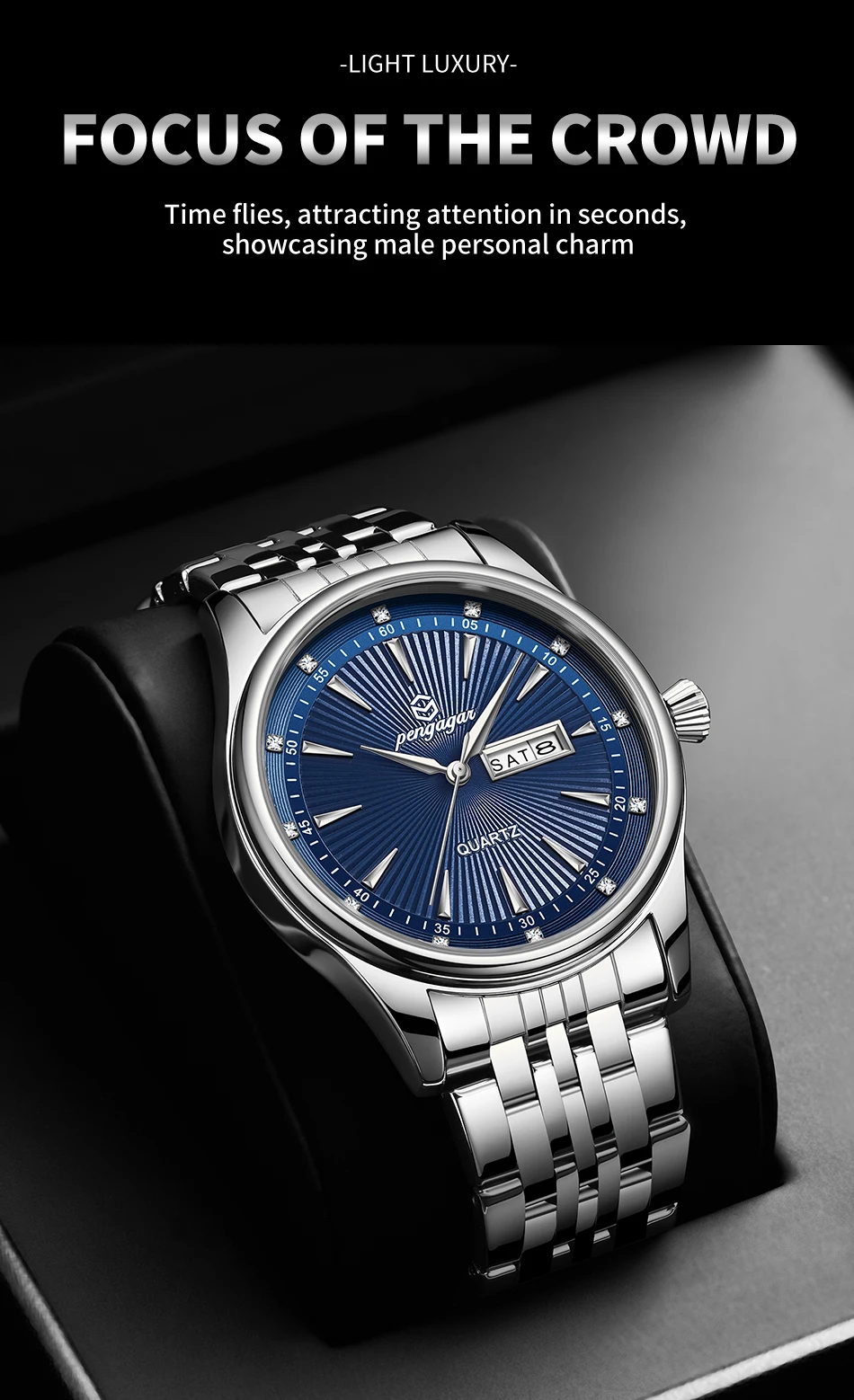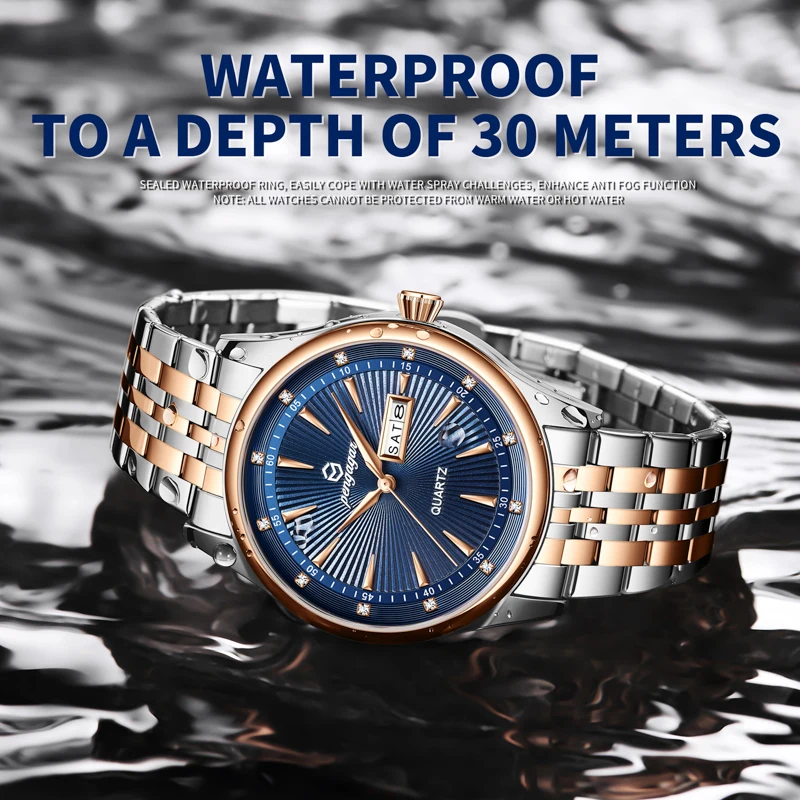 PENGAGAR Luxury Fashion Men Clock Waterproof Luminous Week Date Sports Man Wristwatch Stainless Steel Men’s Quartz Watches Reloj