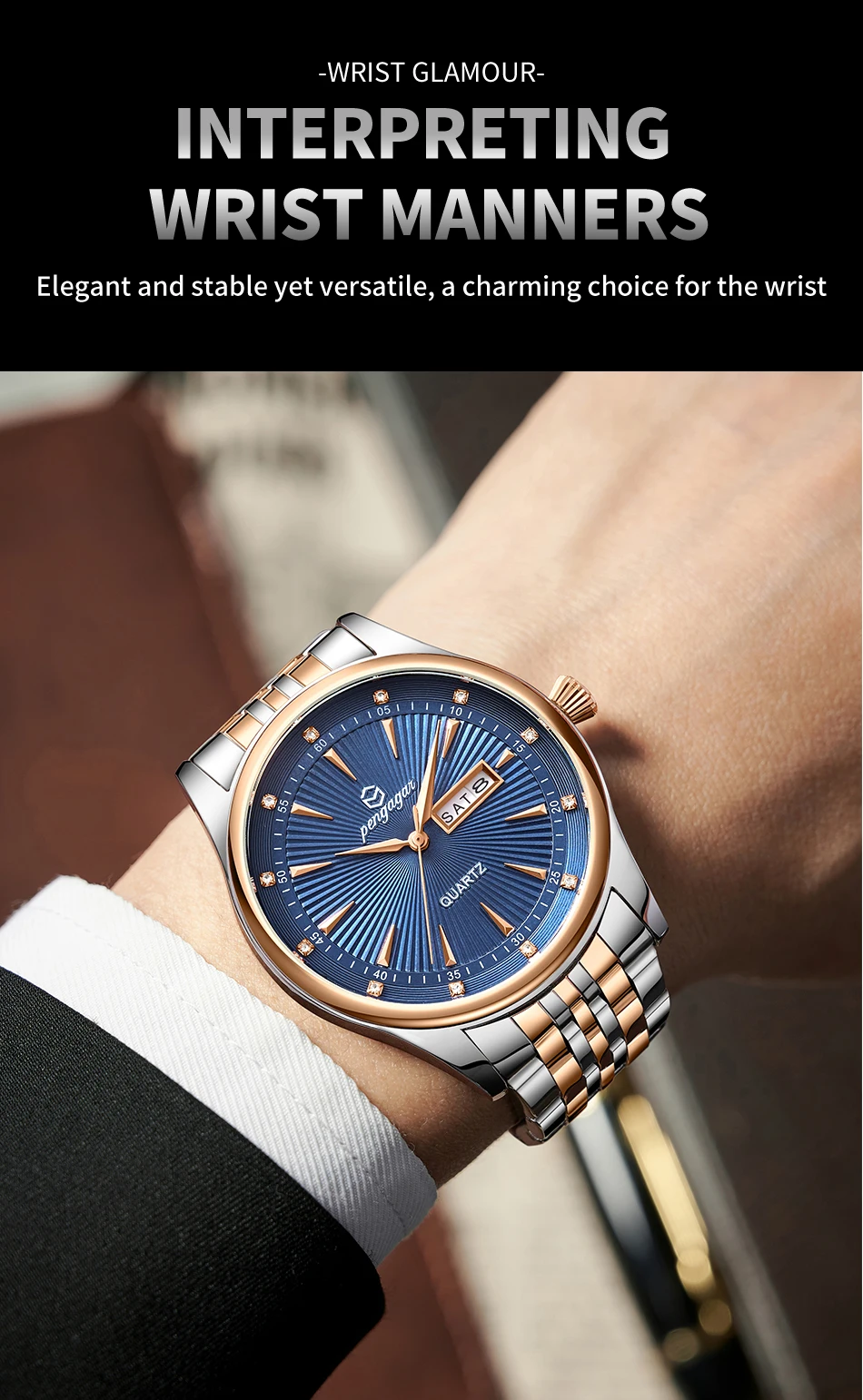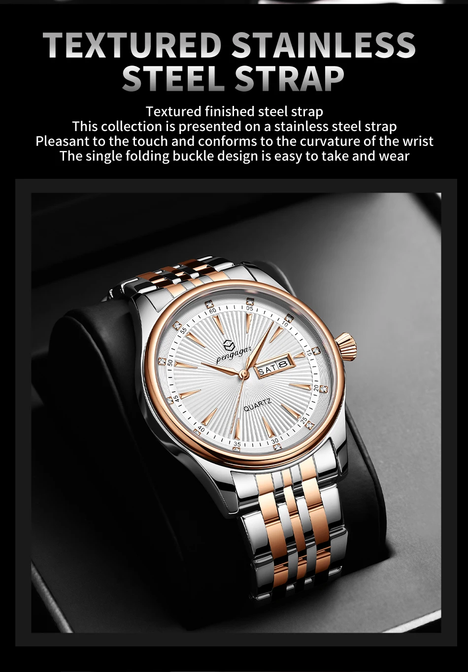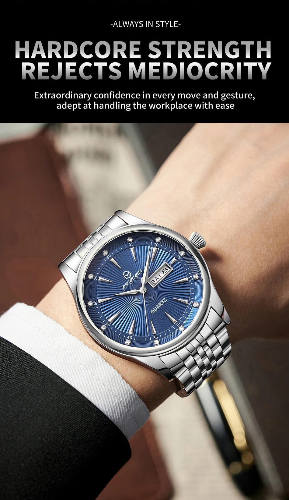 PENGAGAR Luxury Fashion Men Clock Waterproof Luminous Week Date Sports Man Wristwatch Stainless Steel Men’s Quartz Watches Reloj
