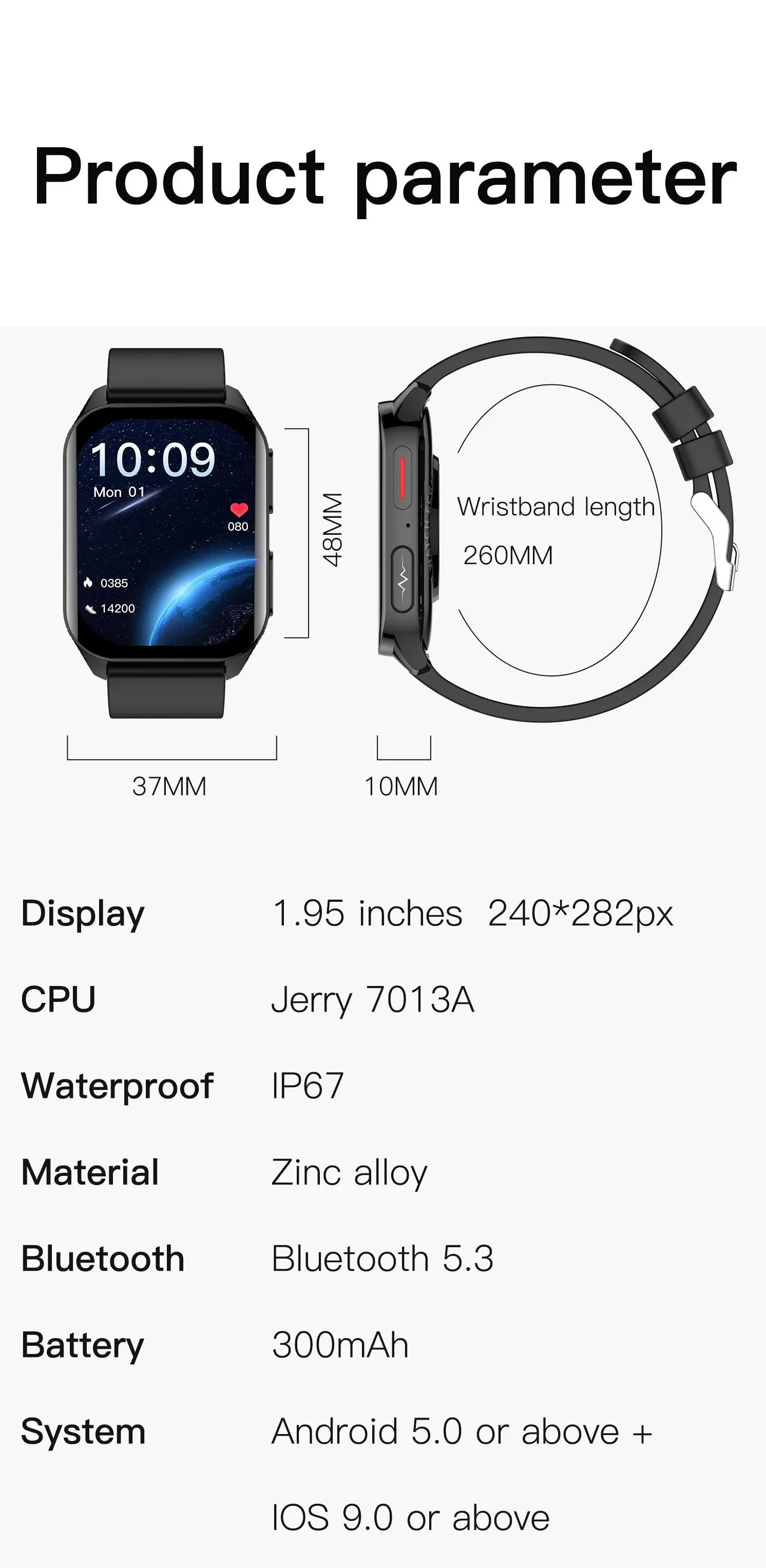 SACOSDING smart watch for men women is equipped with a 1.95-inch full-touch HD display, borderless design, ultra-wide viewing angle, and 240*282 high resolution,so that each screen can be displayed clearly and flexibly. The narrow frame design on all sides refuses to disturb the heavy black frame, bringing you a more open visual enjoyment.
