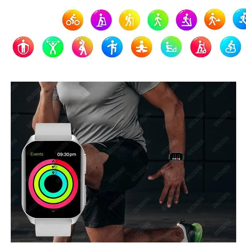 SACOSDING smartwatches have many more useful features suach as  Bluetooth calling,Heart rate detection,Blood oxygen test,Pressure detection,Breathing training,Multimotion pattern,Time ,Pedometer,Calorie Consumption,Distance Calculation,Multiple sport modes,Sleep detection (Sleep time ,Sleep quality),Calls to remind,SMS Reminder,Third-party messaging reminder :Multilingual push,Task Reminder (Sedentary reminder ),Listen to Music etc.