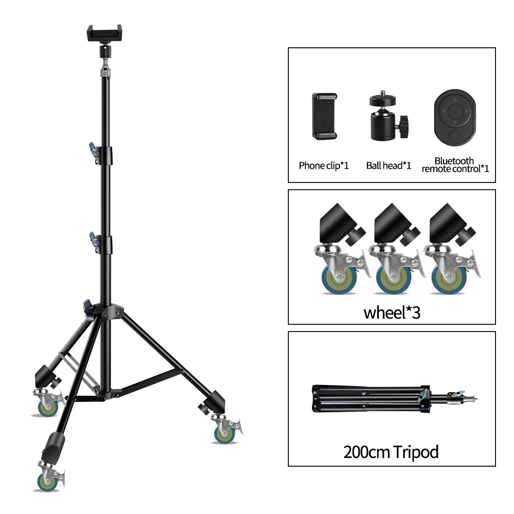 SH Extendable Tripod 190cm With 1/4 Screw&Wheels Bluetooth Remote For DSLR Camera Smartphone Fill Light Microphone Tripod