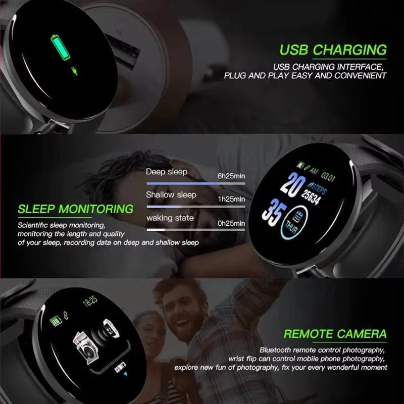 • Function: Passometer,Message Reminder,Call Reminder,Answer Call,Alarm Clock,World Time,Month,Noctilucent,Calendar